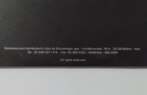 Tapa genérica, de origen italiana. Bordes superior e inferior despegados, pero con las solapas intactas (Nota: si bien según Discogs esta edición sale con portada ilustrada, es curioso que ninguna de las 16 copias en venta al momento de esta publicación la incluya).