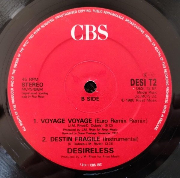 B1 Voyage Voyage (Euro Remix Remix) 6:12 Desireless Voyage Voyage Euro Remix