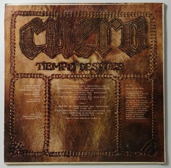 Disco VG de bajo fondo. Muchas marcas superficiales (ninguna grosera). El track A1 entra con fritura evidente que cuando llega el piano queda tapada. En el track A2 hay varios clicks/pops leves, además de fritura evidente cuando la música es baja. El resto del lado así como el lado B reproducen más solidamente (VG strong).